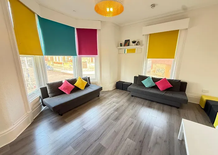The spacious 1-bedroom Deco Apartment 5 Min Walk From Blackpool Tower Sleeps 12 is located in the North Shore district of Blackpool, nearly a 5-minute walk from the Grundy Art Gallery.